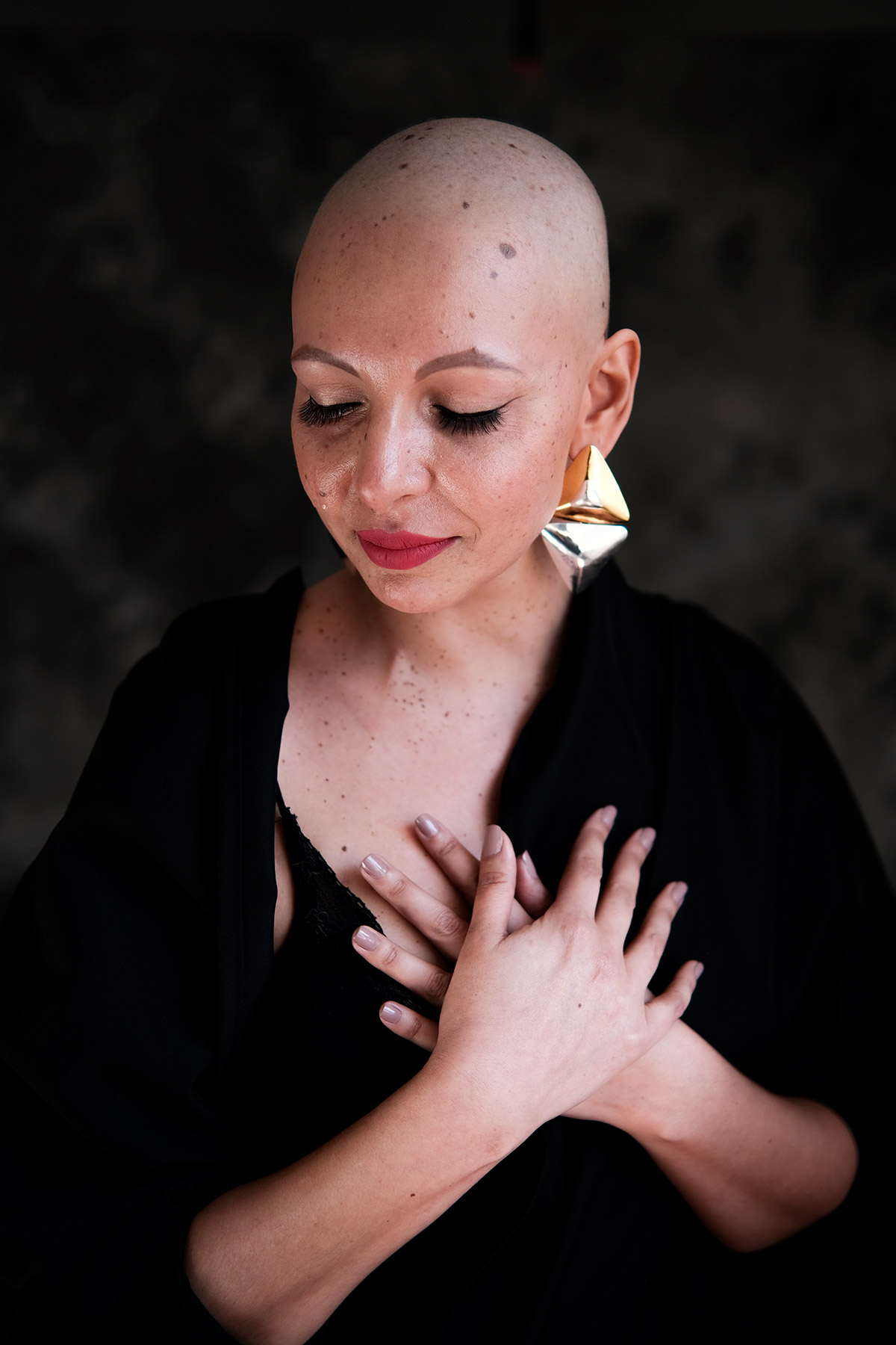 Elle est arrivée en plein cœur de sa chimio. Crâne nu, corps fatigué, mais dans les yeux cette lumière. Une force douce, une joie mêlée à cette rage de vivre qu’on ne peut feindre. Dès les premiers échanges, quelque chose s’était reconnu entre nous et le jour du shooting, on a ri, beaucoup. On a fait des photos puissantes, vibrantes, pleines d’elle, pleines de vie.
