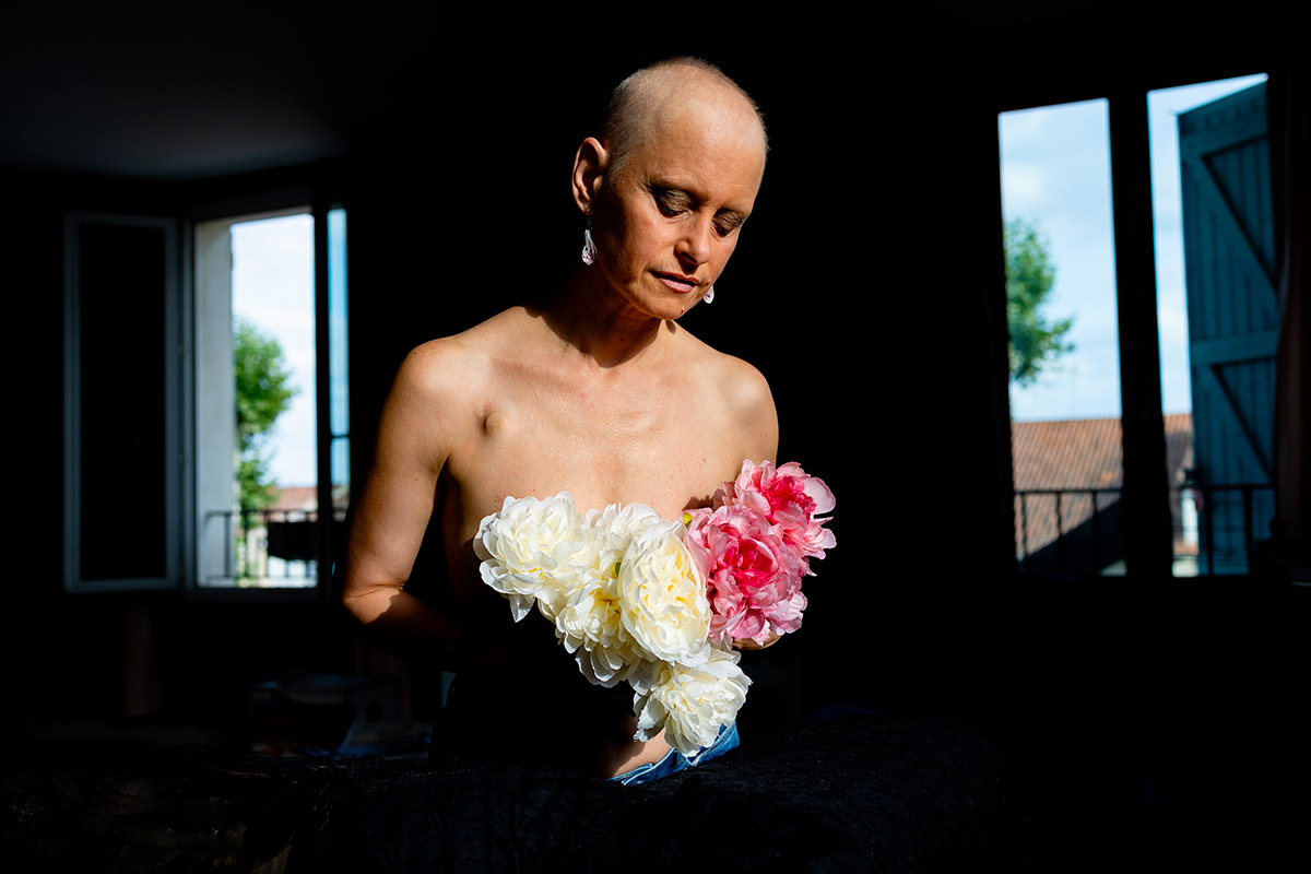 Karine se bat contre la maladie depuis 2015. Je l’ai photographiée, elle et d’autres femmes qui mènent le même combat, pour mettre en lumière leur courage et leur résilience. Ce sont des guerrières ordinaires et de leur pugnacité, elles peuvent être fières.