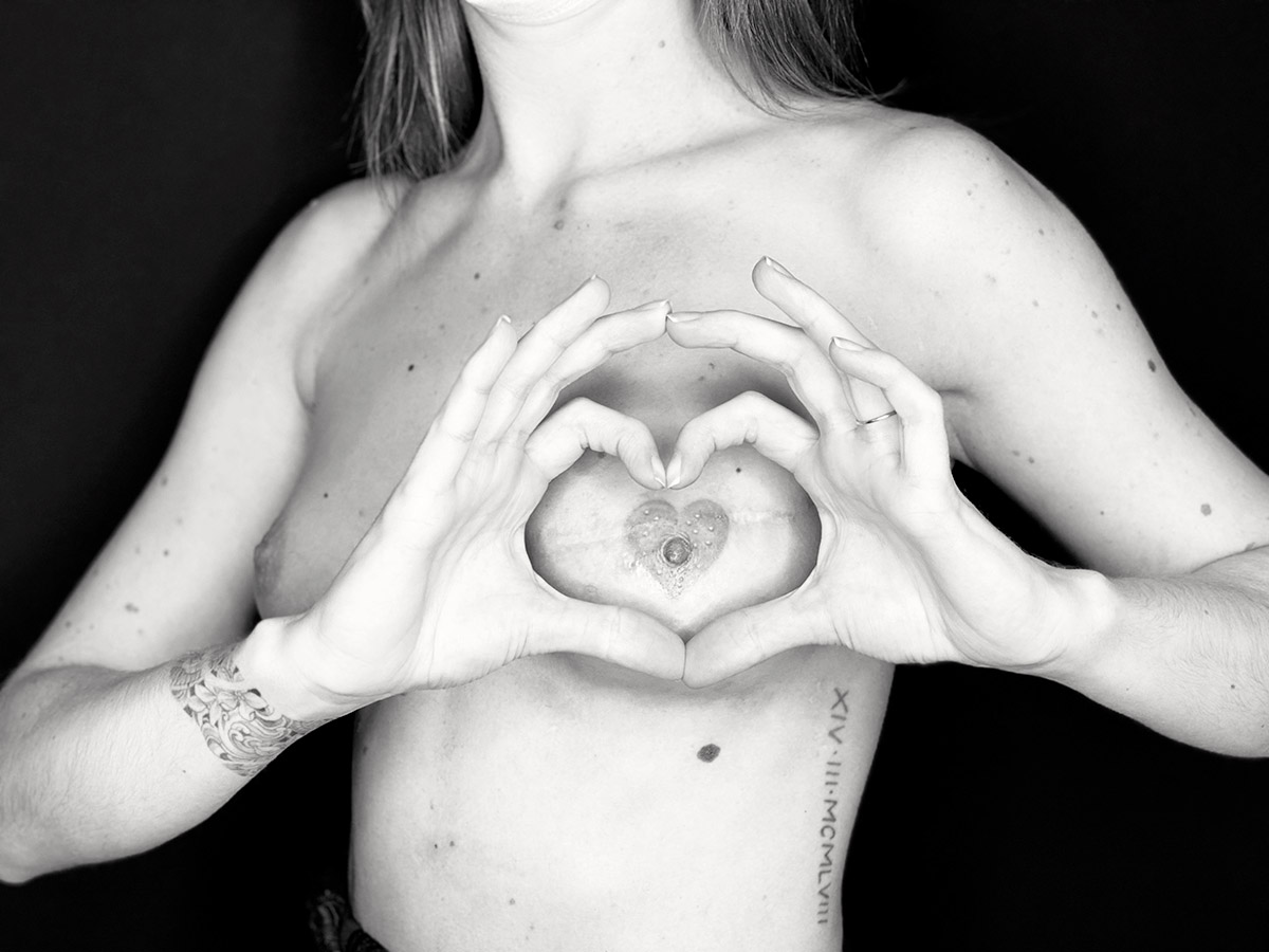 Cœur avec les mains, cœur sur ce sein reconstruit qui ne sera pourtant jamais à l’identique, cœur à cœur avec le miroir et coup de cœur pour ce cœur-nichon à jamais aimé et qu’on a enfin envie de montrer…