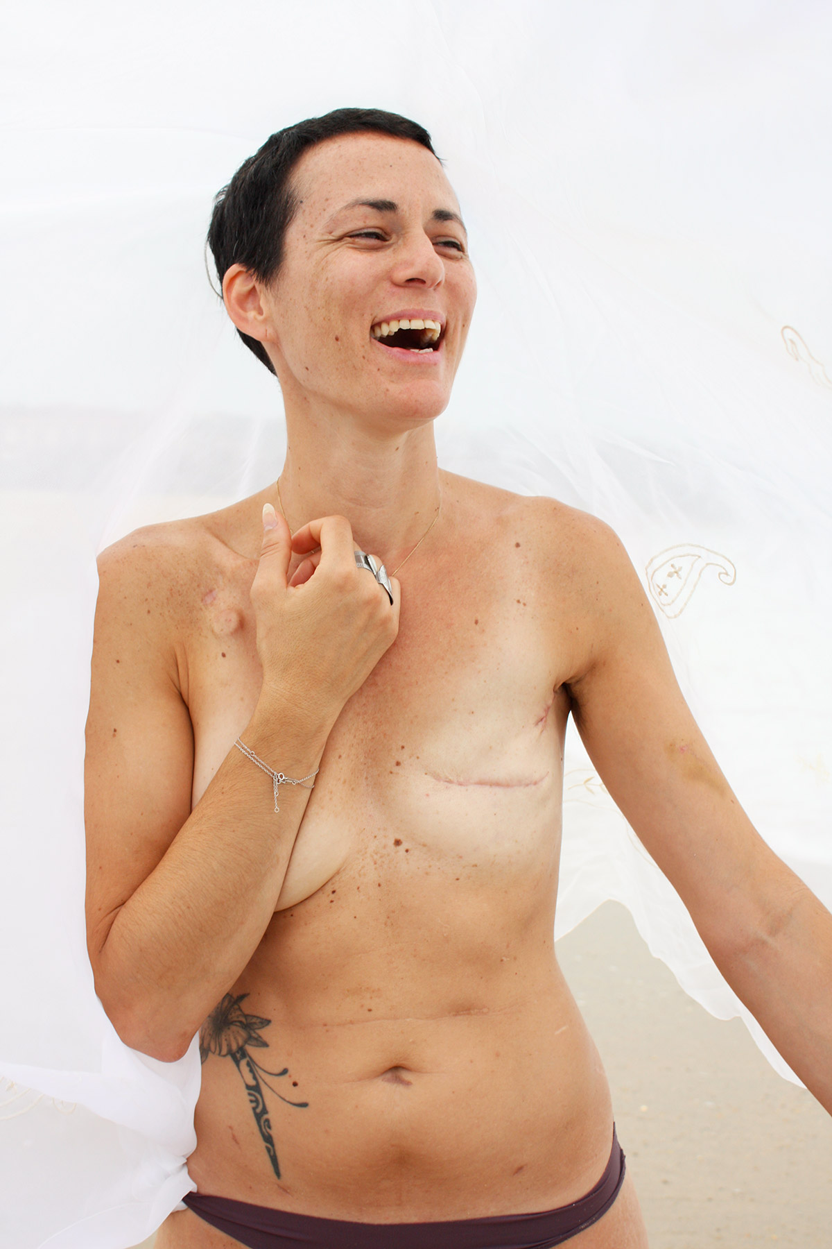À l’aube de la double mastectomie, l’envie d’immortaliser ceux qui ont souvent été « trop petits », « trop ombiliqués pour allaiter »… Bientôt ils ne seront plus. Ce moment capturé en image pour mémoire. Cancer, tu auras eu temporairement mes cheveux, définitivement mes seins ; mais tu n’auras pas cet élan vital qui m’anime et me fait croire en ma bonne étoile. »